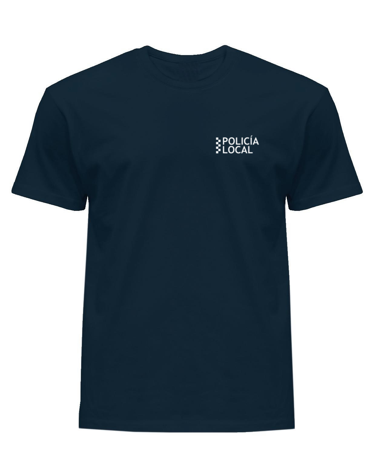 Camiseta básica UNISEX de manga corta, 100% algodón. , desde la talla XS hasta la XL. En color azul oscuro, con logo Polocía LOCAL