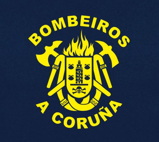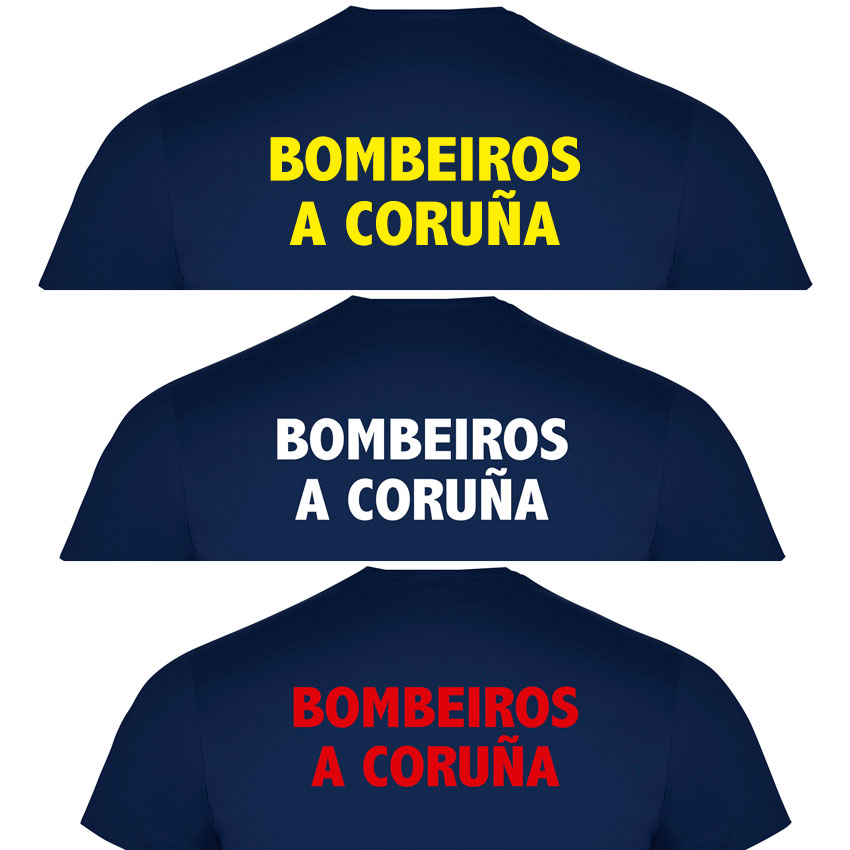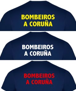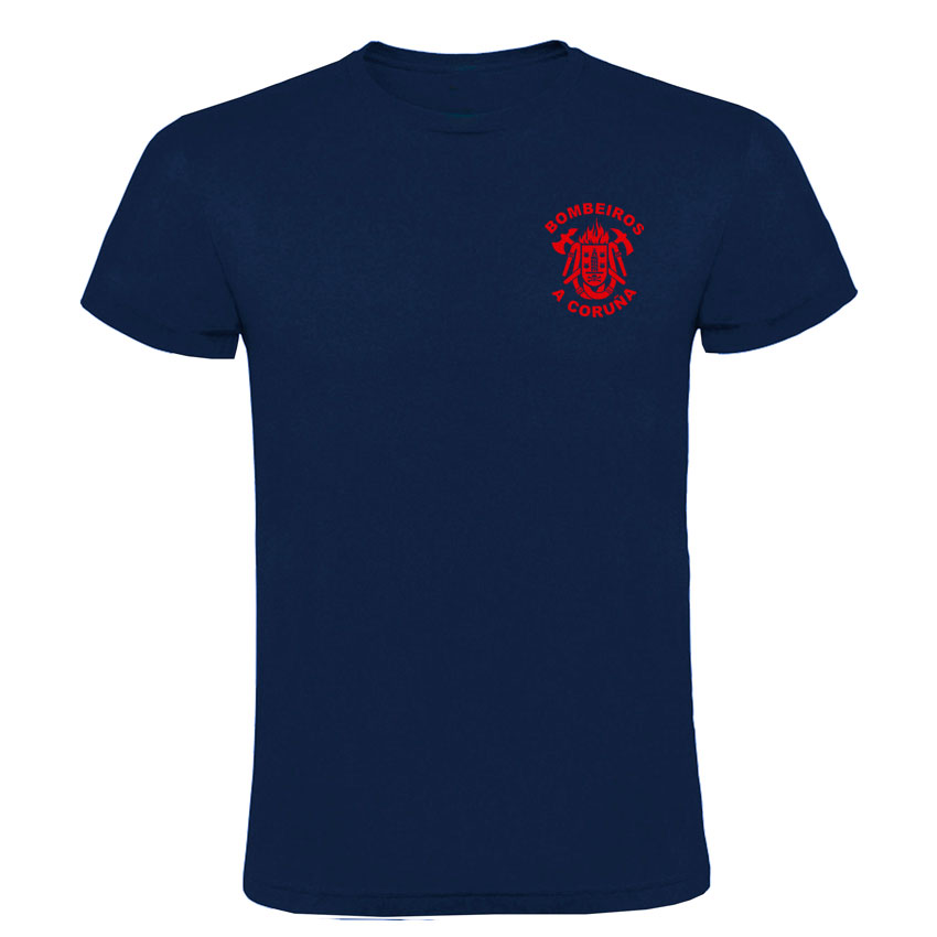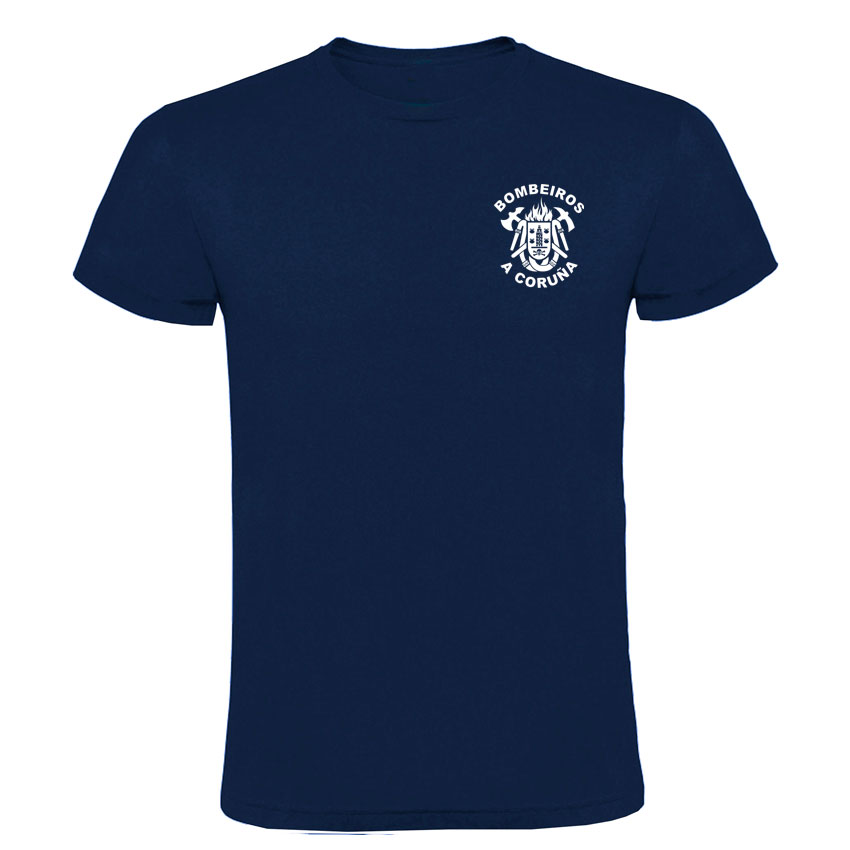 Camiseta básica UNISEX de manga corta, 100% algodón. , desde la talla XS hasta la XXL. En color azul marino, con logo BOMBEIROS A CORUÑA