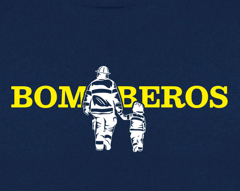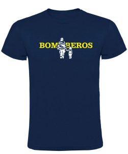 Camiseta básica UNISEX de manga corta, 100% algodón. , desde la talla XS hasta la XXL. En color azul marino, con logo BOMBERO CON NIÑO