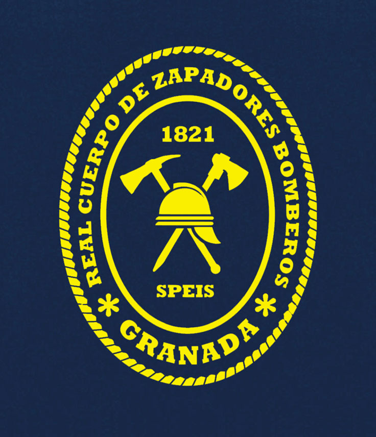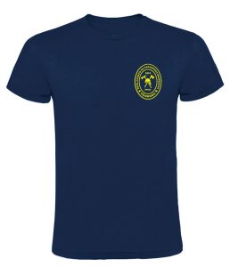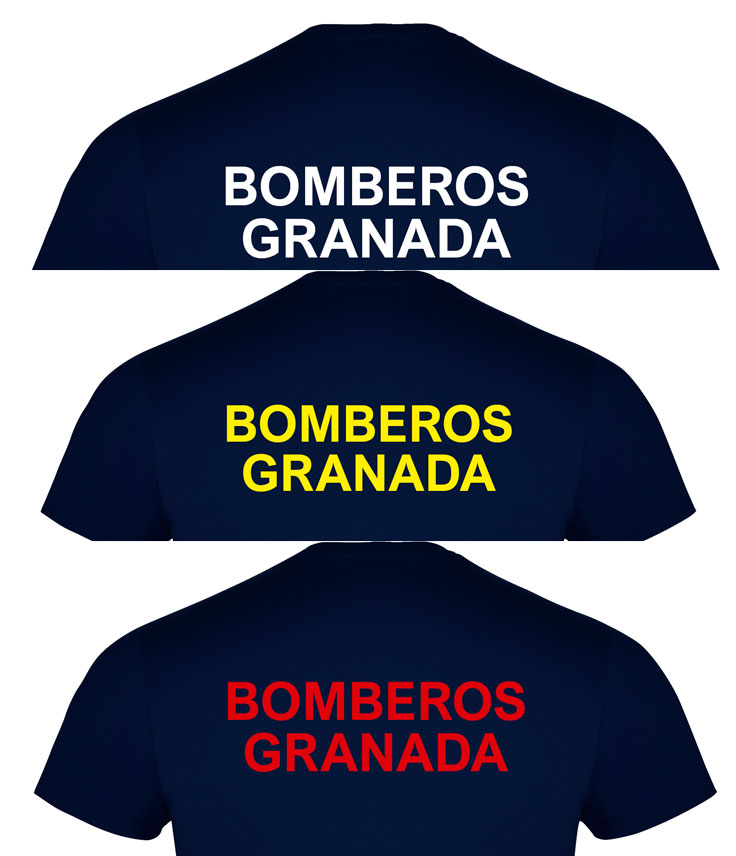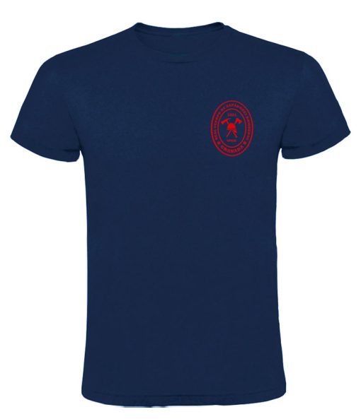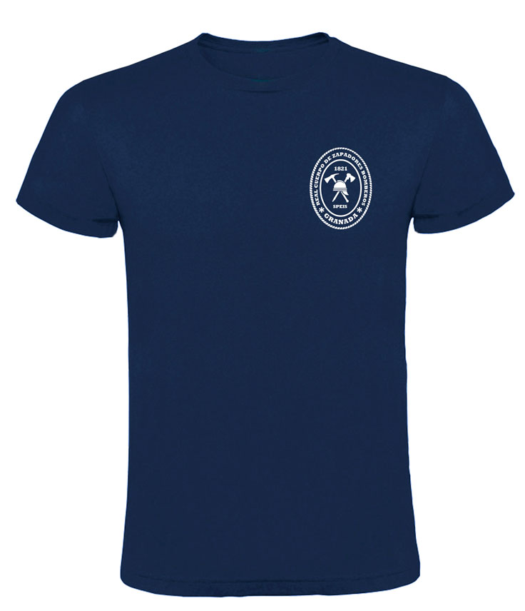 Camiseta básica UNISEX de manga corta, 100% algodón. , desde la talla XS hasta la XXL. En color azul marino, con logo BOMBEROS GRANADA