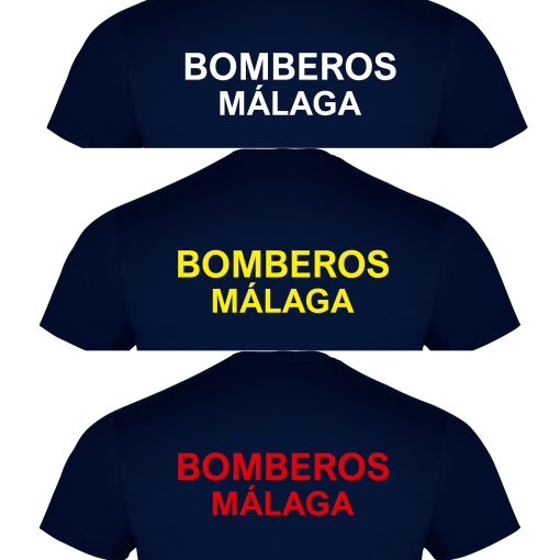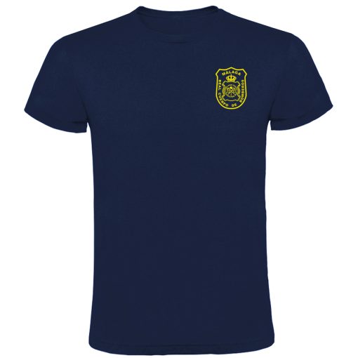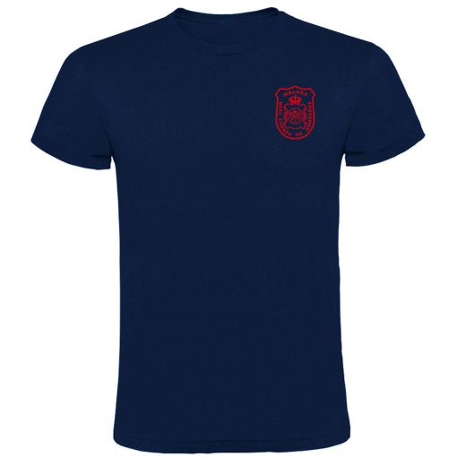 Camiseta básica UNISEX de manga corta, 100% algodón. , desde la talla XS hasta la XXL. En color azul marino, con logo BOMBEROS MÁLAGA