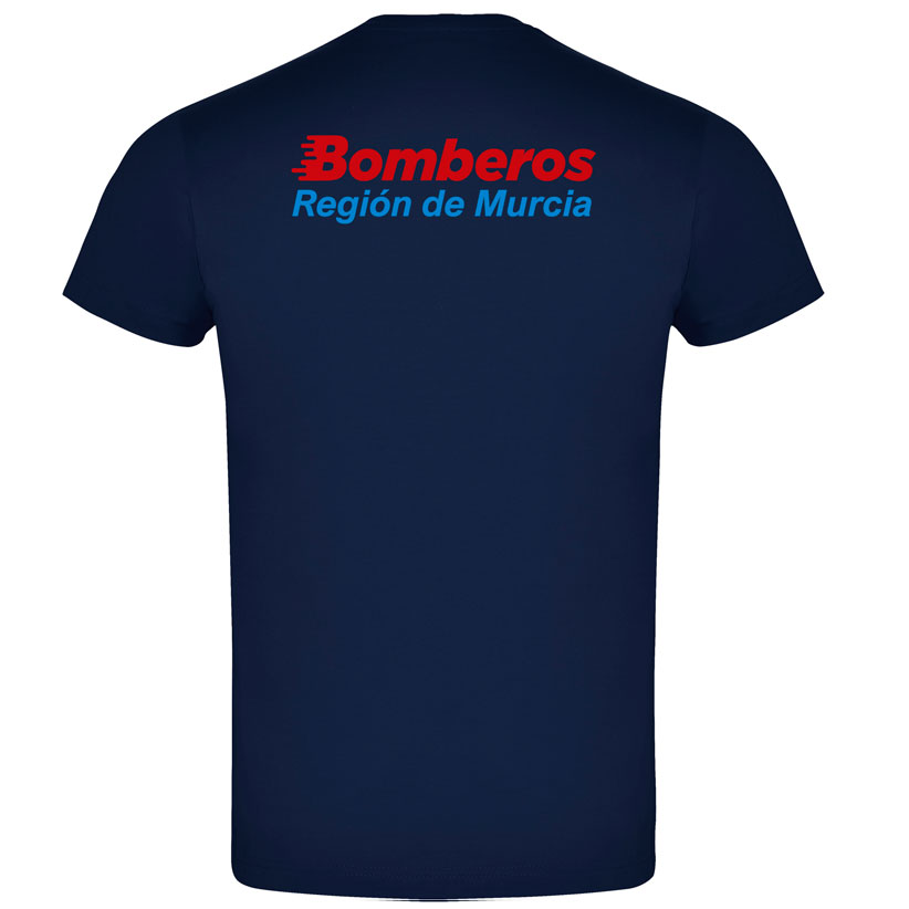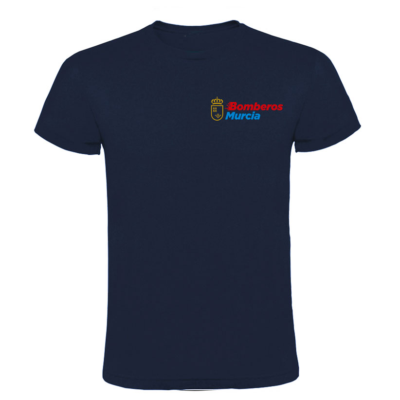 Camiseta básica UNISEX de manga corta, 100% algodón. , desde la talla XS hasta la XXL. En color azul marino, con logo BOMBEROS MURCIA
