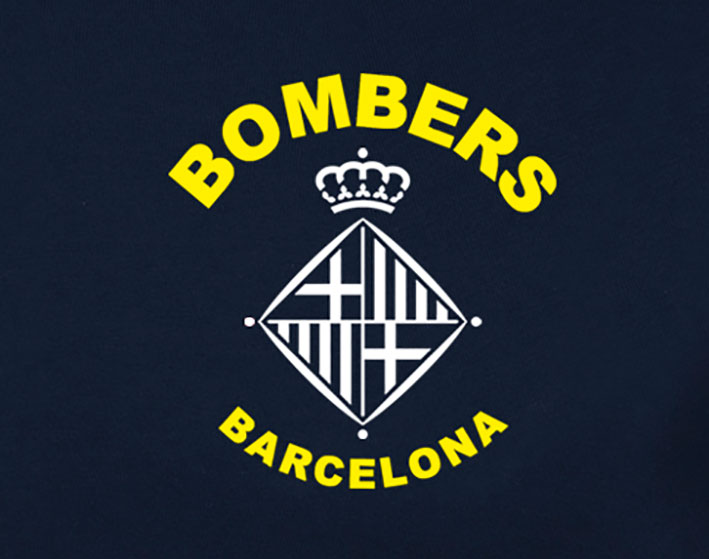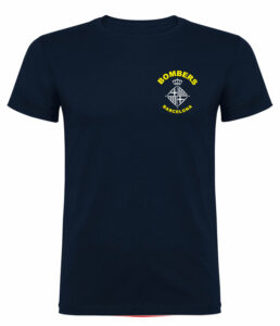 Camiseta básica UNISEX de manga corta, 100% algodón. , desde la talla XS hasta la XXL. En color azul marino, con logo BOMBEROS BARCELONA