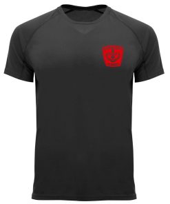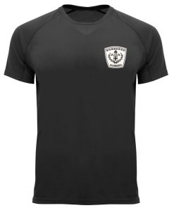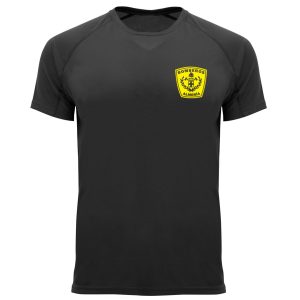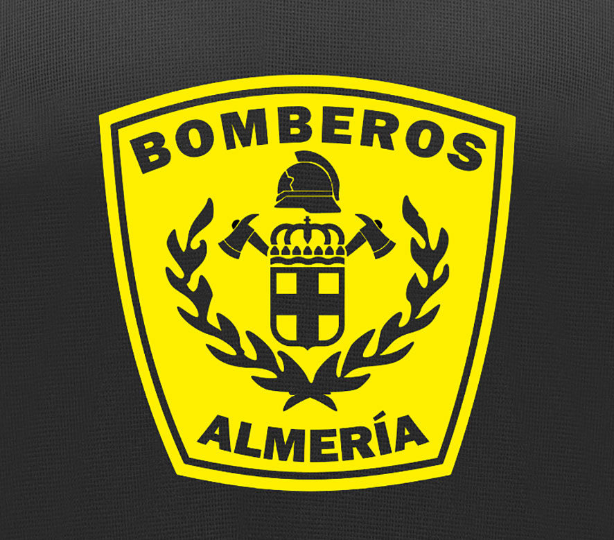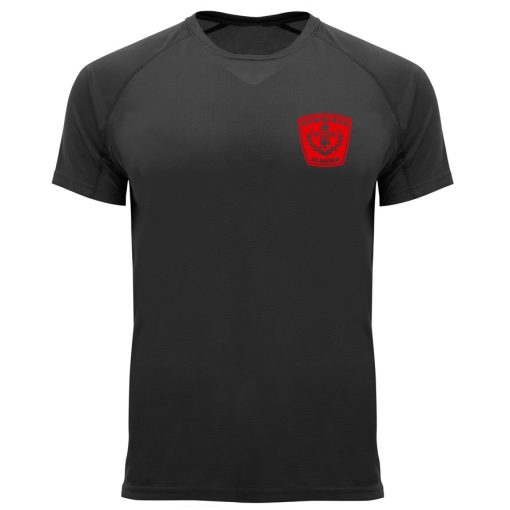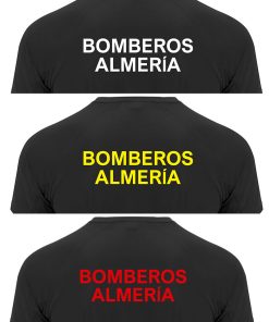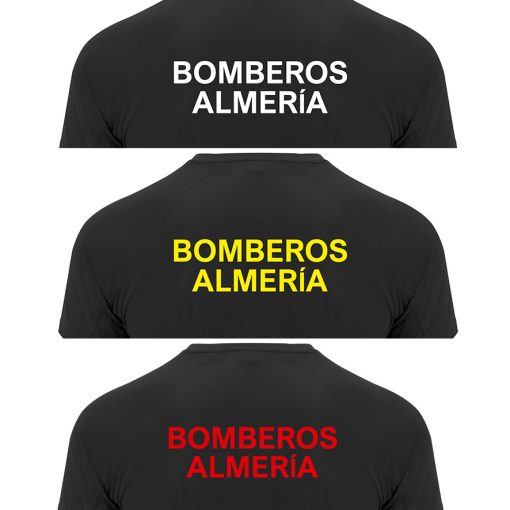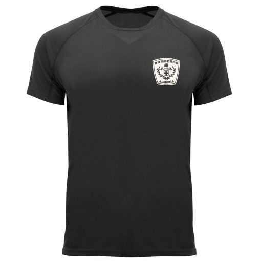 Camiseta básica UNISEX de manga corta, 100% POLIESTER , desde la talla XS hasta la XXL. En color Negro, con logo BOMBEROS ALMERÍA.