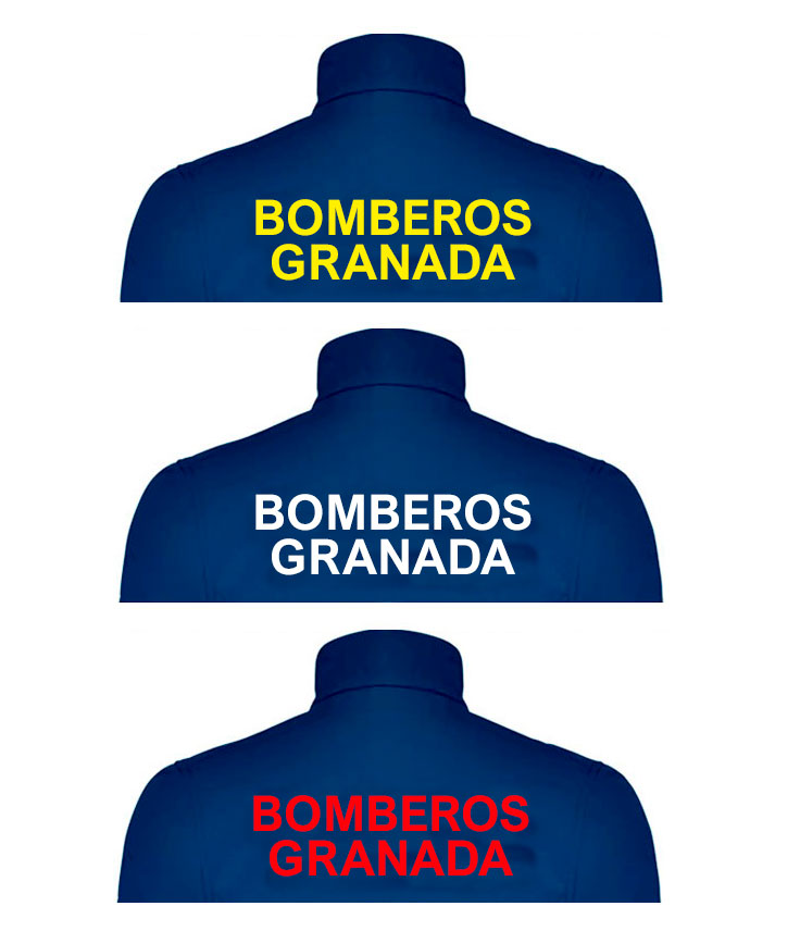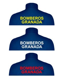 Logo delantero BOMBEROS GRANADA en vinilo de alta calidad y posibilidad de texto en la espalda.